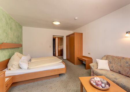 Our guests also feel very comfortable in the lounge with its bright conservatory and in summer a sun terrace with a view of the mountains awaits you.